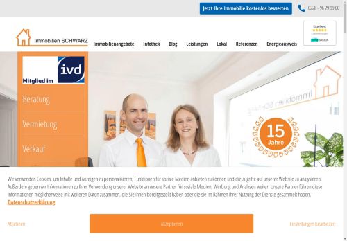 Schon zum 2. mal lasse ich durch Herrn Falkenbach von Immo Schwarz eine Wohnung vermieten.Die Zusammenarbeit war wieder vorzüglich. Natürlich kostet das alles eine Menge Geld,aber es ist gut angelegt.Die Beratung zeigte Sachkunde,die Darstellung im Netz war gut, die Beschreibung vollständig und klar,und die Vorauswahl der potentiellen Mieter zeugte von großer Menschenkenntnis.