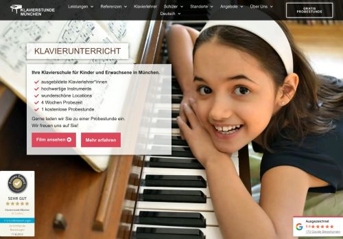Klavierstunde München bietet Klavierunterricht auf höchstem Niveau an vielen Standorten in München . Absolut professionell geführt , sympathisch und seriös ! Sehr gute Lehrer und Instrumente. Viel Erfolg für die Zukunft !!!