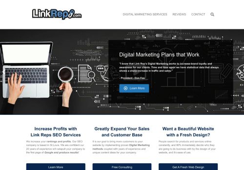 I needed a bunch of help on my new website. It looked like a standard cookie cutter site and had nothing going on. I contacted Link Rep in St. Louis for for help with the SEO and really the basic Web Design. What a great place. The were able to make some immediate changes that made my site look really professional. Then over a couple weeks we started getting phone calls from people that actually were wanting to buy what we were selling! Traffic to the site is up over 300%, and the quality of the leads is much better. I have had to hire another person just to help with the new business. This is the greatest phone call I have made for my business. Thanks!