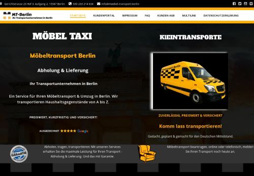 Sehr lobenswert, mein kleiner Möbeltransport verlief reibungslos ab. Habe kurzfristig die Mt Berlin für einen Möbeltranport in Berlin angefragt und habe noch zum selben Tag einen kleintranport in Berlin durchführen können. Kann es nur weiterempfehlen.
