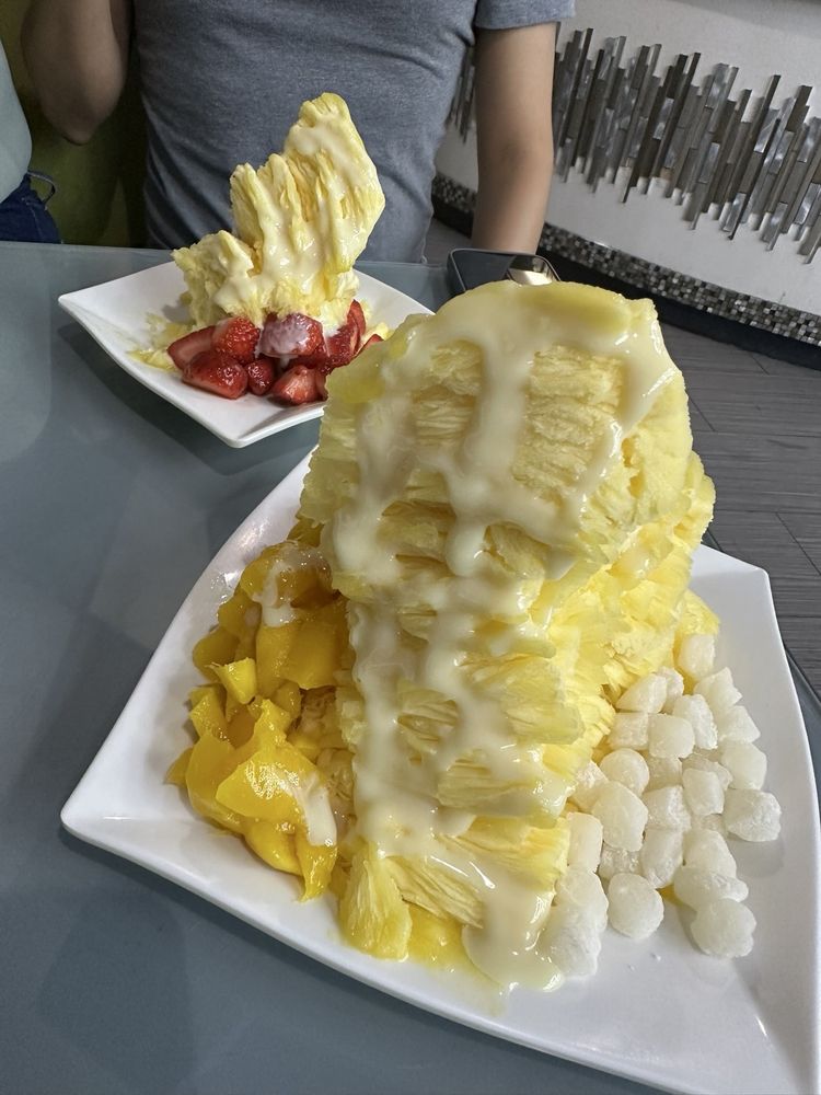 First time having shaved ice. So many options of flavors. We went with mango and almond, with fresh fruit with the strawberry drizzle. It was refreshing.