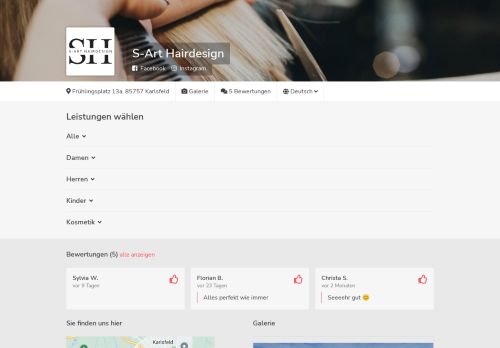 War zum ersten Mal hier, zum Waschen, Schneiden und Föhnen. War sehr zufrieden und beeindruckt, auch die Beratung war sehr gut. Werde gerne wiederkommen und freue mich, dass ich eine sehr gute Friseuse in meiner Nähe gefunden habe.