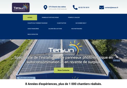 Nous avons fait appel à Tersun pour la pose de panneaux photovoltaïques, pleinement satisfait de leur travail. Toute les équipes que ça soit au niveau commerciale, administrative, et terrain ont largement répondues à nos attentes. Je recommande pour vos futur projets