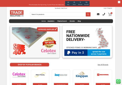 I've used trade insulations a couple of times now. The prices are competitive and have met my delivery deadlines. The insulation is always well packed onto pallets and nothing was damaged.