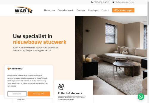 De mannen van W&B Stukadoors hebben onze gehele nieuwbouwwoning gestuct met een dunpleisterlaag. Daarna hebben de Tex-spuiters, met wie zij samenwerken, de gehele woning wit gespoten in RAL 9016. Vooral de zolder heeft daardoor een heel andere uitstraling gekregen. We zijn erg blij met het strakke en nette resultaat. Ook de communicatie, zowel vooraf als tijdens de werkzaamheden, is als zeer duidelijk en prettig ervaren.