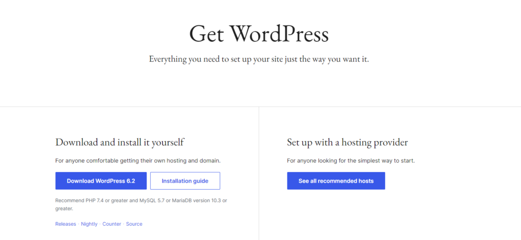 - Hosting: This provides server space to install WordPress and store your site.